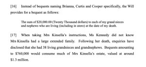 Re Denholm [2025] NZHC 1881. The testator leaves $20,000 to each of her grandnieces and grandnephews, thinking she’s got three. Turns out she had 38!